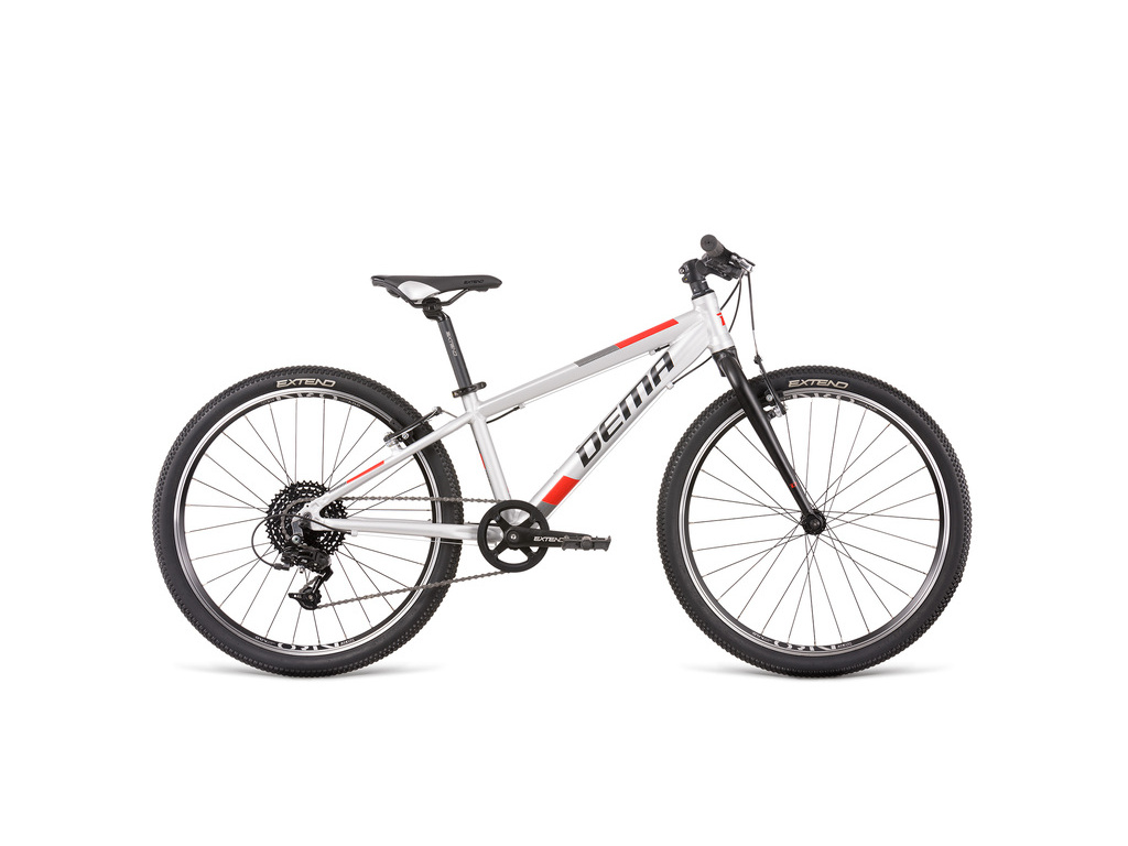 Nastáva obdobie, kedy vášmu dorastajúcemu športovcovi nestačí klasický detský bicykel, ale túži nasadnúť na model, podobajúci sa tomu vášmu? Potom je DEMA Rocket na 24-palcových kolesách ideálny. 8-rýchlostné radenie SUNRACE mu pomôže do kopca a spoľahlivé brzdy EXTEND ho bezpečne zastavia pod ním. Navyše sa s plášťami EXTEND teraz nemusíte báť ani nespevnených lesných ciest. S DEMA Rocket zažijete novú úroveň vašich spoločných cyklo dobrodružstiev!