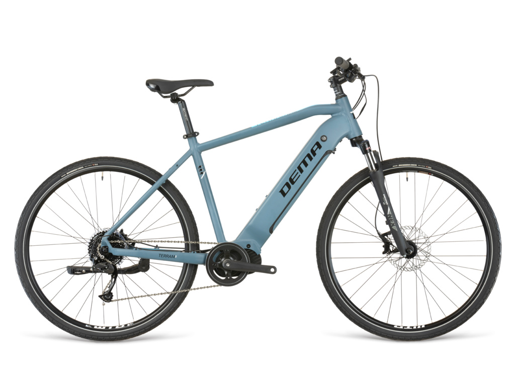 Pohodlný a dostupný horský elektrobicykel – DEMA Terram 5 s pohonom Bafang M300 a batériou s kapacitou 630 Wh.