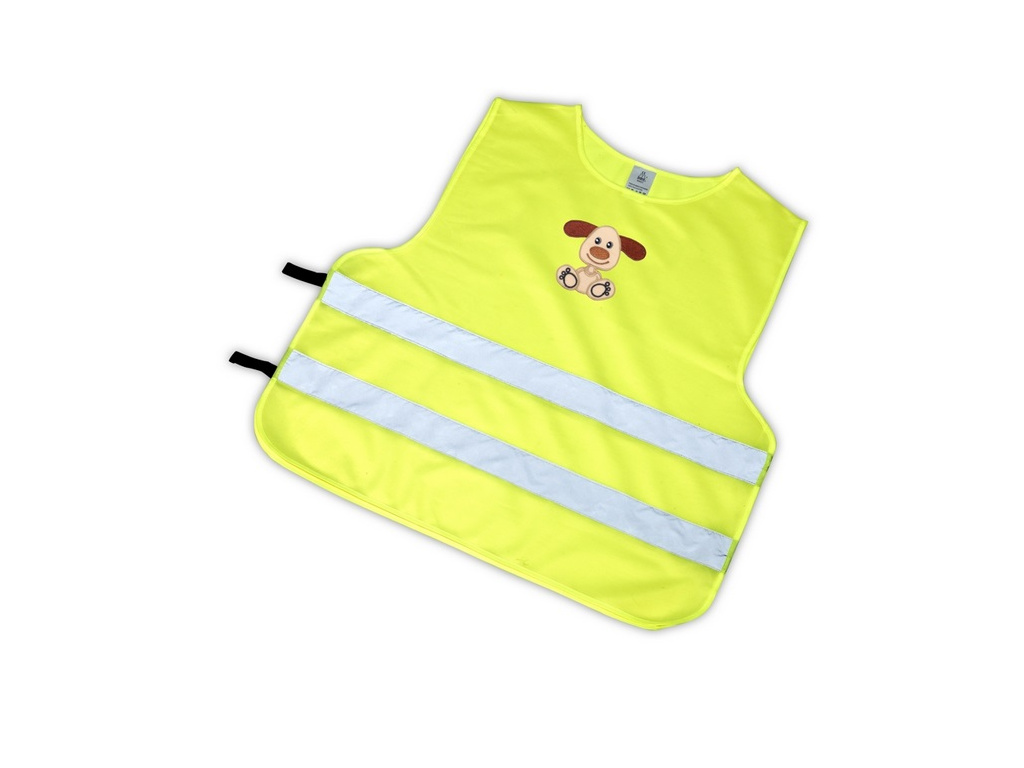 Detská bezpečnostná vesta s obrázkom psa. Vidieť a byť videný - to je základné pravidlo bezpečnosti na cestách. To platí dvojnásobne