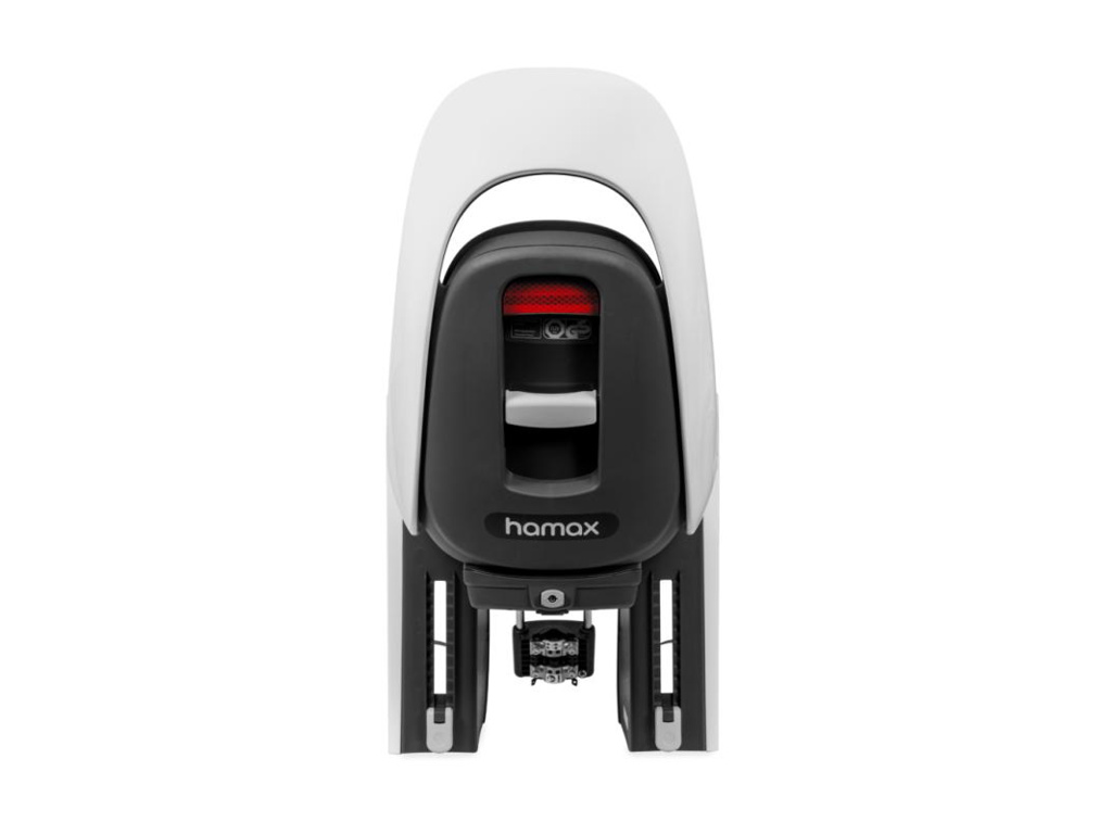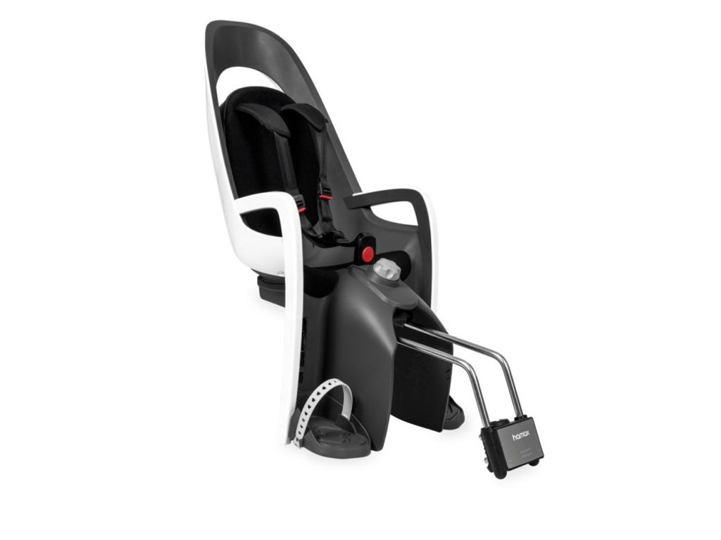 Špičková samonosná polohovacia sedačka HAMAX Caress s uzamykateľným zámkom nosných tyčí (tyče nie je možné bez odomknutia upínacieho zámku vybrať). Zadná montáž sedačky bez nutnosti použitia nosiča.