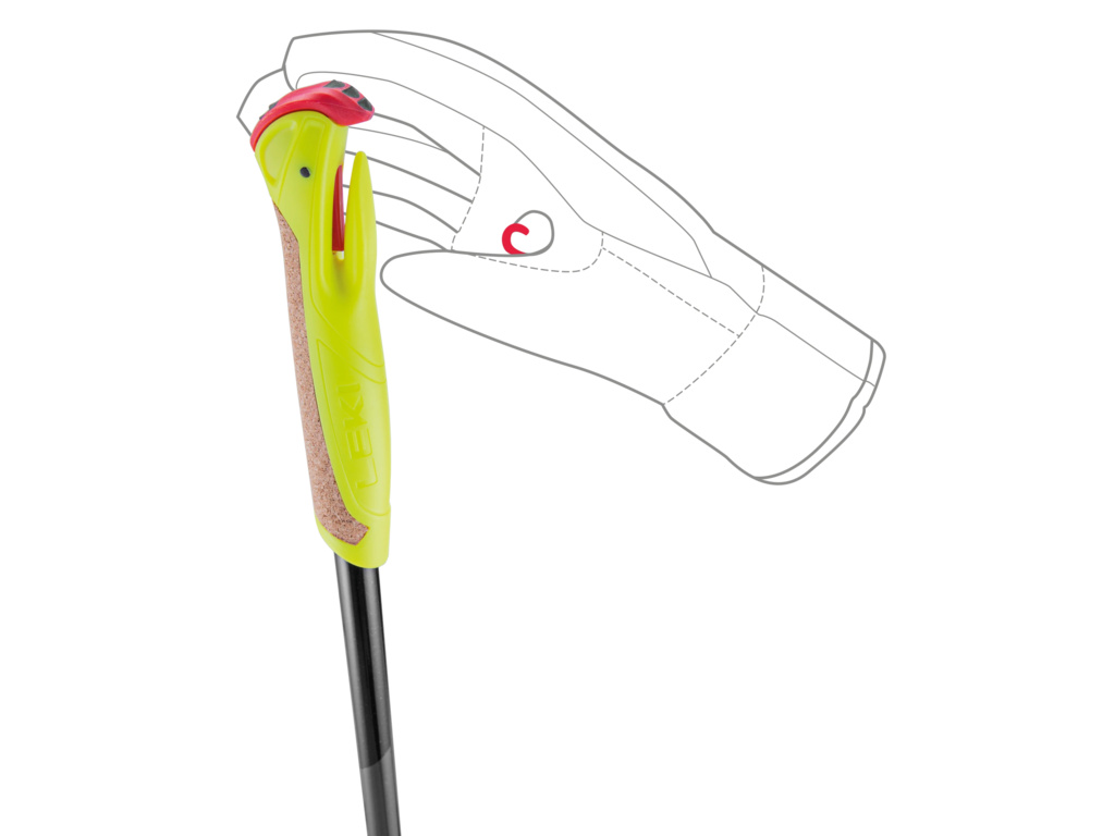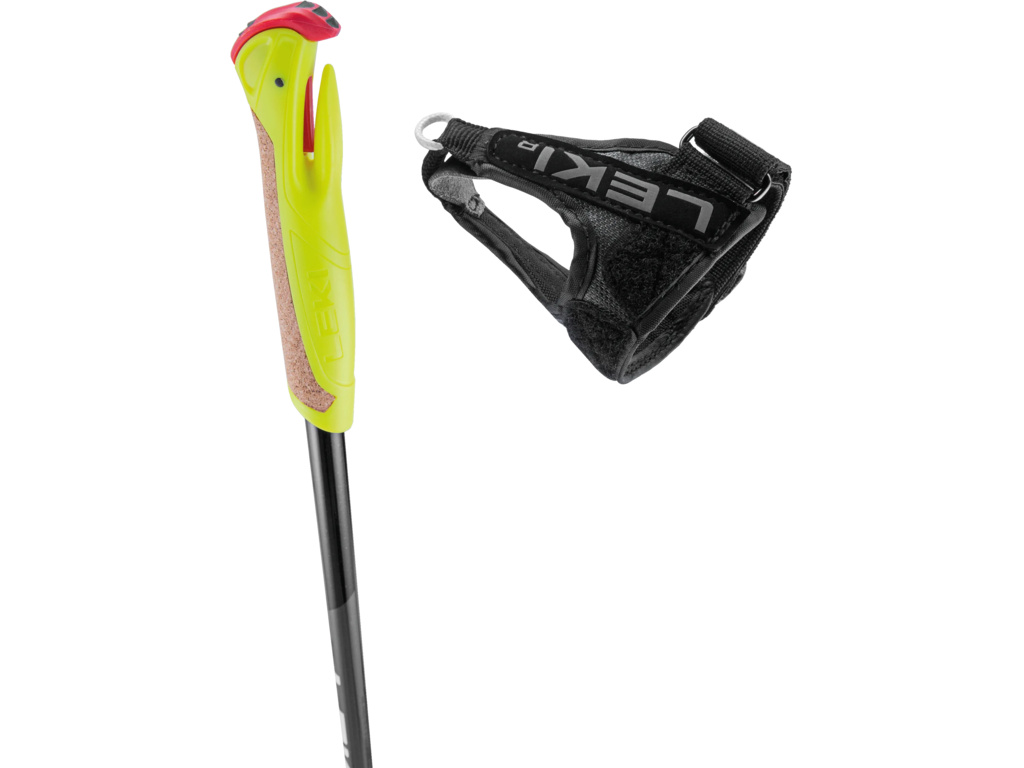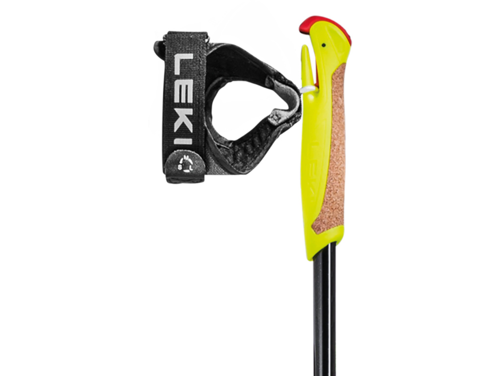 Bežecká palica s plnohodnotnou výbavou – systémom Trigger Shark, anatomicky tvarovaným a plynulo nastaviteľným pútkom, ľahkým tanierikom a oceľovým hrotom – pre mladých. LEKI XTA 5.5.