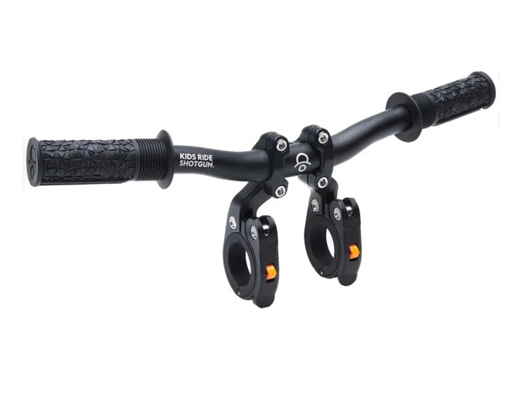 Originálne riadidlá k detskej sedačke Shotgun Pro na rám bicykla. Vaše dieťa si zamiluje jazdu na detskej sedačke vpredu, keď bude mať vlastné riadidlá, ktoré môže držať ako jeho mama alebo otec.