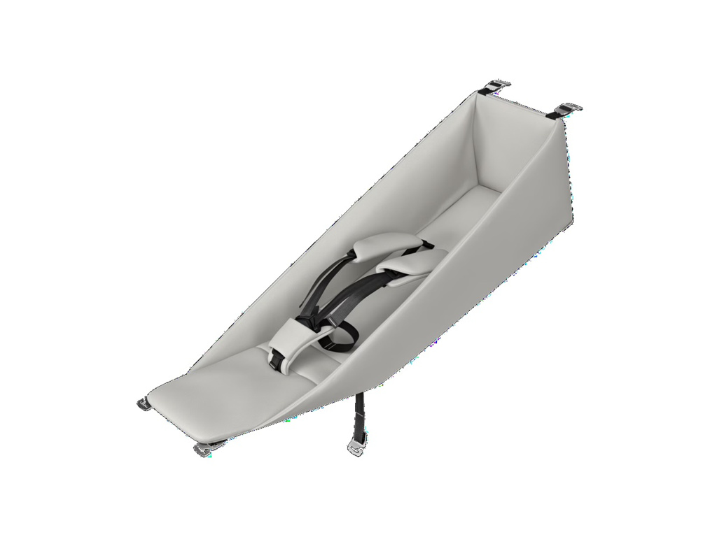 Polstrované závěsné lůžko zajišťující boční oporu a maximální stabilitu dítěte (věk 1–10 měsíců).