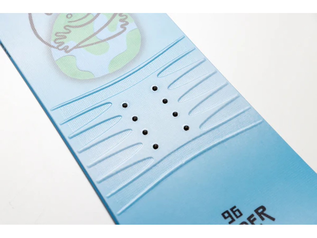 Nový poměr délky a šířky je přizpůsoben dětským botám a spolu s „catch-free“ tvarem usnadňuje první oblouky bez zasekávání hran. Měkký a hmotnosti přizpůsobený flex zajišťuje, že snowboard reaguje přesně tak, jak malí jezdci potřebují.