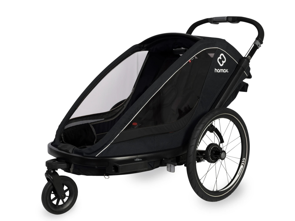 Dvoumístný dětský vozík HAMAX Breeze je lehký a pohodlný cyklistický vozík pro aktivní rodiny. Vyniká pevnou konstrukcí, promyšlenou ergonomií a snadným ovládáním, díky čemuž zvládne městské cyklojízdy i delší cyklo výlety. Velká okna nabízejí skvělý výhled, větrací panely zlepšují cirkulaci vzduchu a praktické prvky usnadňují každodenní používání.