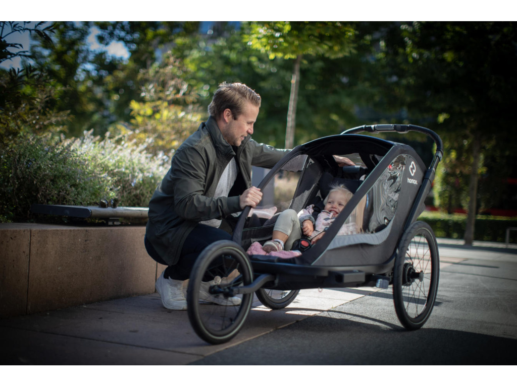 Detský vozík HAMAX Cocoon ONE je ideálnym riešením pre aktívnych rodičov, ktorí chcú svoje dieťa bezpečne a pohodlne prepravovať počas cyklojázd. Vďaka stabilnej konštrukcii, kvalitnému odpruženiu a priestrannému interiéru ponúka dieťaťu maximálny komfort aj pri dlhších trasách. Vozík je vybavený 5-bodovým bezpečnostným pásom, reflexnými prvkami a odolnou textíliou, ktorá chráni pred vetrom, dažďom aj hmyzom.