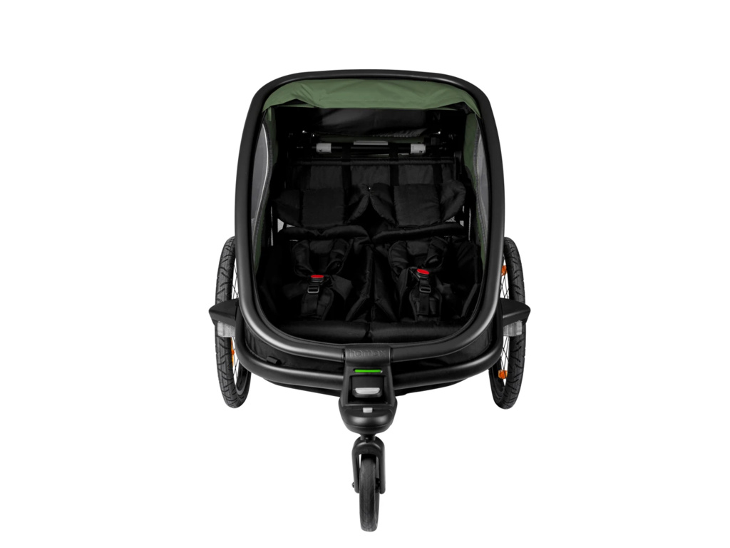 • Multifunkčné použitie: vozík za bicykel a možnosť rozšírenia o ďalšie sety podľa dostupnosti (napr. kočíkový či joggingový)