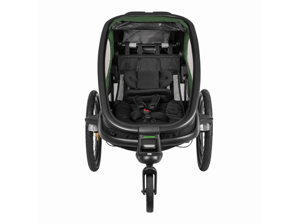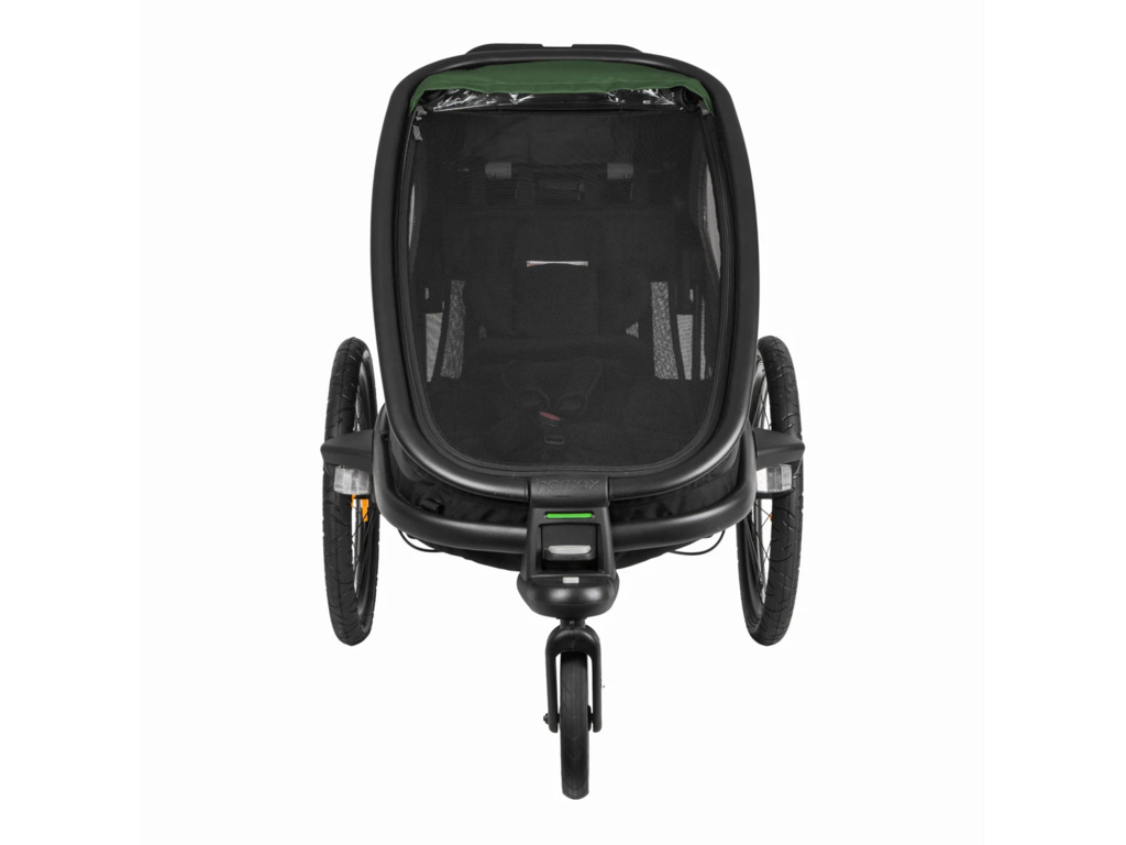 Multifunkčné použitie: vozík za bicykel a možnosť rozšírenia o ďalšie sety podľa dostupnosti (napr. kočíkový či joggingový)