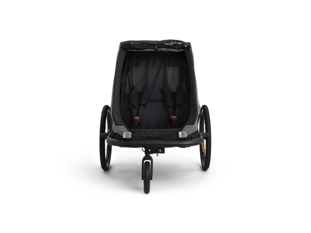 Traveller je lehký a praktický dvoumístný vozík za kolo, který lze snadno přeměnit na kočárek.