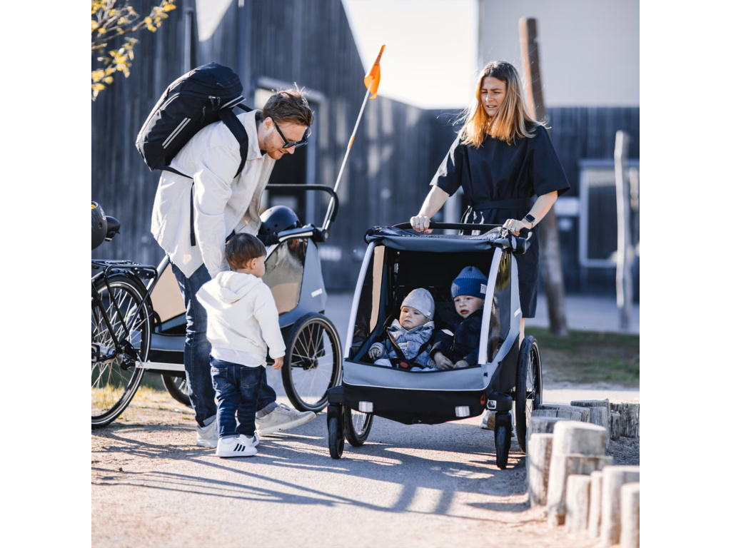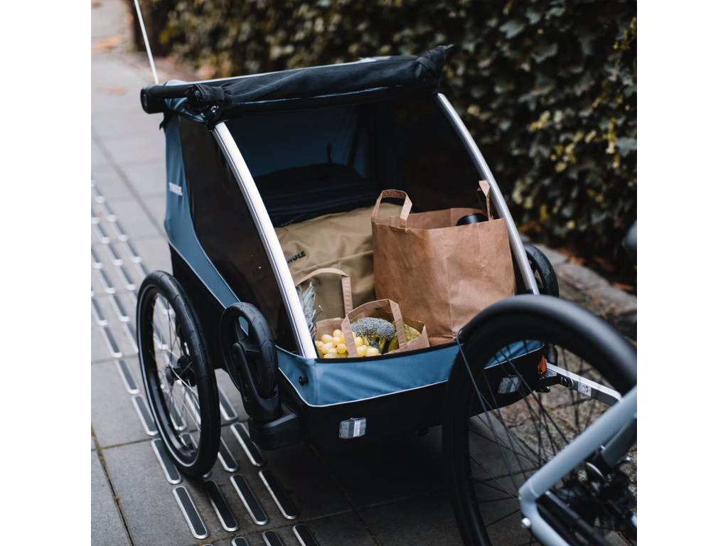 Thule Courier je univerzálny vozík za bicykel, ktorý využije každá rodina. Odolný vozík je vďaka priestrannému kokpitu pre dve deti ideálny na dlhé rodinné výlety aj rýchle cesty do mesta. Je skvelým prostriedkom na dochádzanie aj odvoz detí do škôlky. A keď dorazíte na miesto, jednoducho vozík premeníte na kočík s kompaktnými kolesami a plne nastaviteľnou rukoväťou pre rodičov, čo uľahčuje manévrovanie na preplnených miestach. Tento komfortný vozík za bicykel možno navyše premeniť na vozík na prepravu nákladu a máte aj ďalšie možnosti.