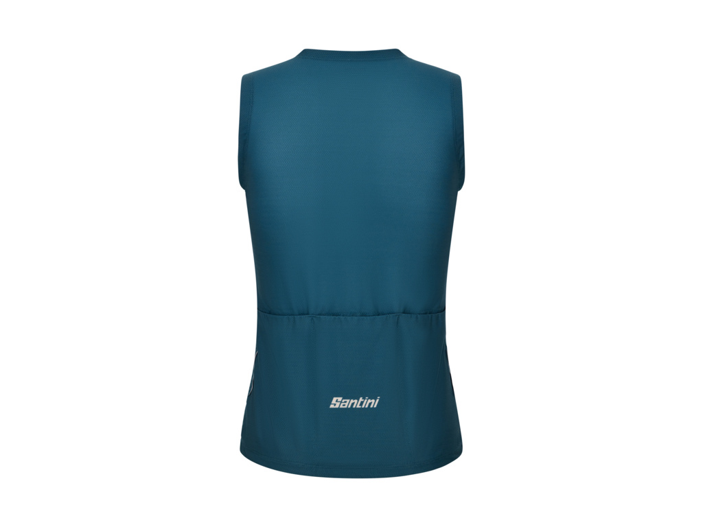 Dres bez rukávov SANTINI Opal s priliehavým strihom, sieťovaným materiálom a UV ochranou je ideálnou voľbou na horúce letné jazdy – maximálna ventilácia, komfort a čistý športový dizajn.