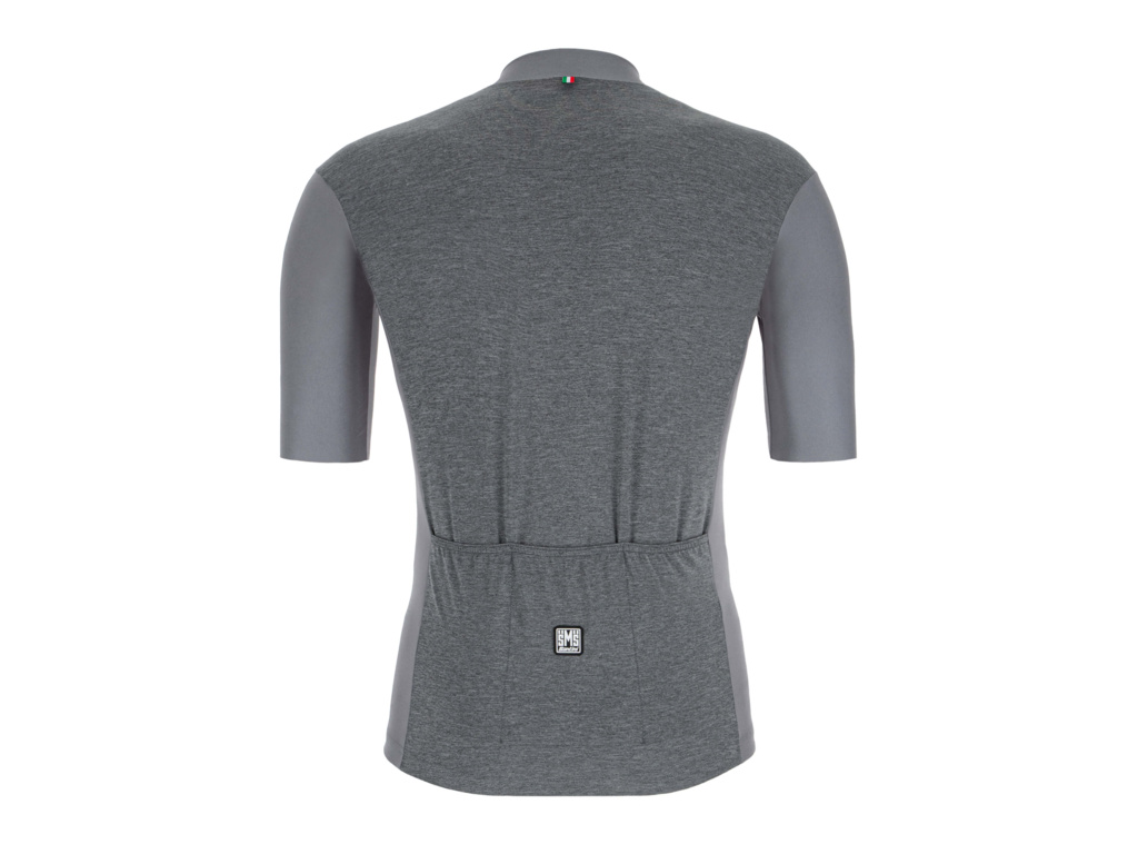 SANTINI Colore Jersey je pánsky cyklistický dres vyrobený z kombinácie ľahkých a kvalitných tkanín, ktoré ponúkajú extrémne pohodlie a štýlový vzhľad. Model má predĺžené rukávy a nízky golier na získanie aerodynamického SlimFit strihu, elastický vnútorný silikónový lem na spodnej časti, aby nedošlo k vyhrňovaniu a dres zostal na svojom mieste a reflexné detaily pre väčšiu bezpečnosť. Melanžová tkanina podporuje priedušnosť, preto je dres ideálny na jarné a letné tréningy a cyklovýlety.