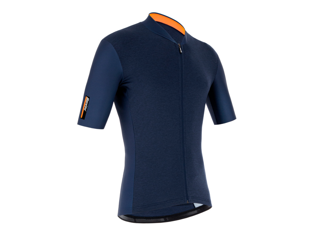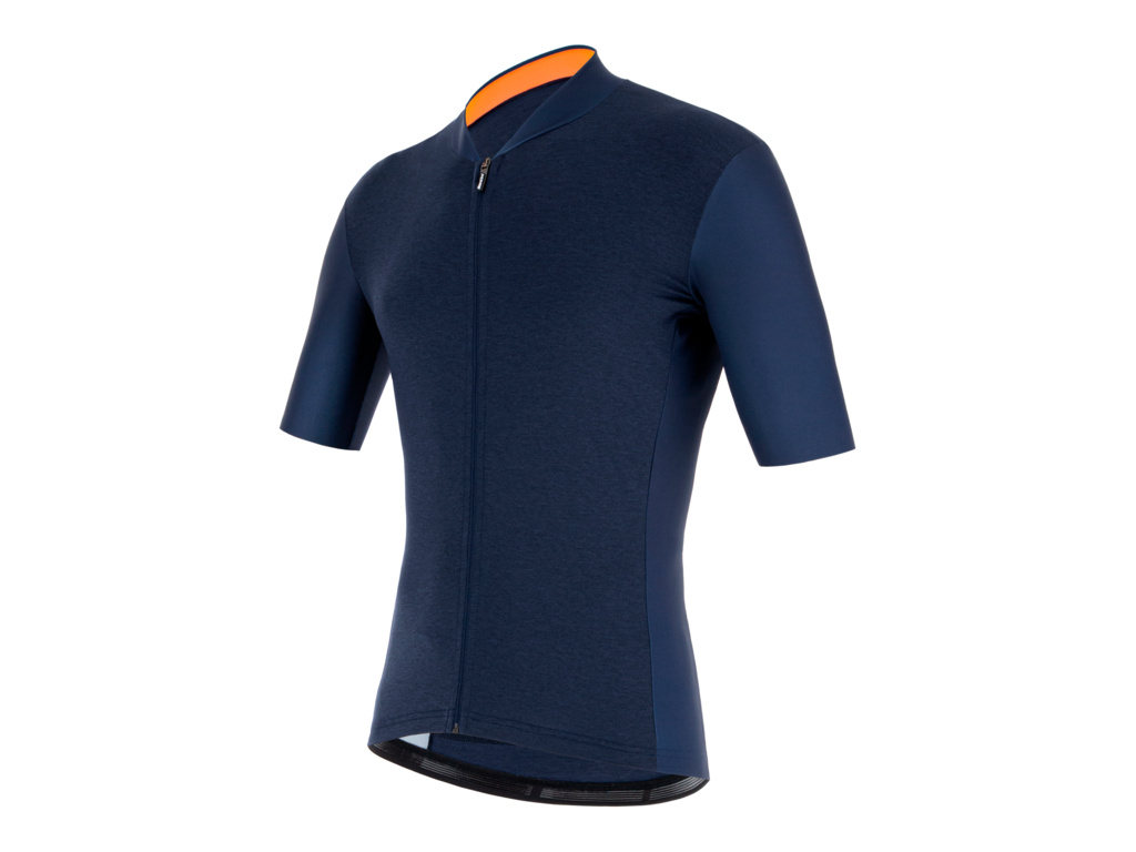 SANTINI Colore Jersey je pánsky cyklistický dres vyrobený z kombinácie ľahkých a kvalitných tkanín, ktoré ponúkajú extrémne pohodlie a štýlový vzhľad. Model má predĺžené rukávy a nízky golier na získanie aerodynamického SlimFit strihu, elastický vnútorný silikónový lem na spodnej časti, aby nedošlo k vyhrňovaniu a dres zostal na svojom mieste a reflexné detaily pre väčšiu bezpečnosť. Melanžová tkanina podporuje priedušnosť, preto je dres ideálny na jarné a letné tréningy a cyklovýlety.