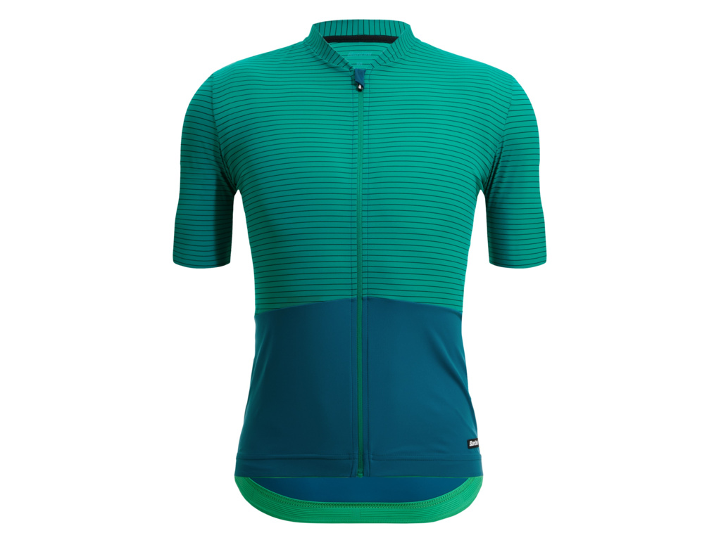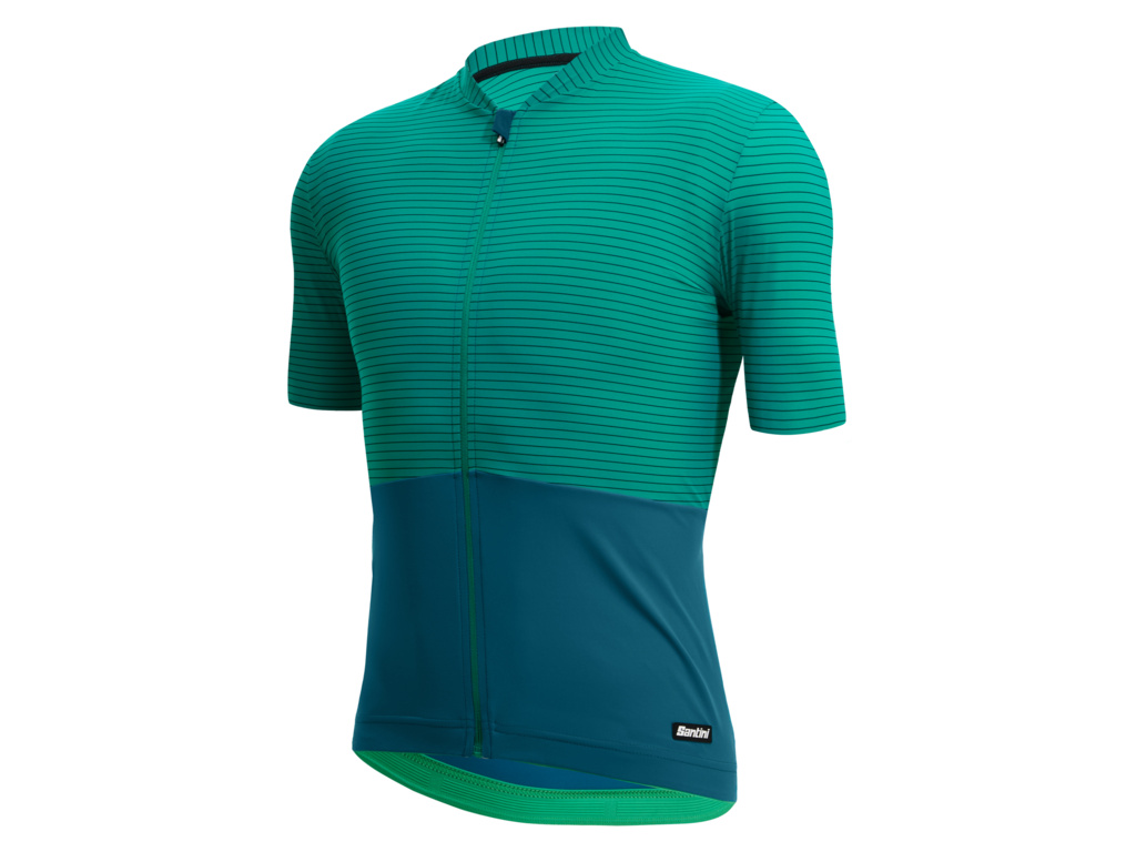 Komfortný, praktický a priedušný dres SANTINI Colore Riga s francúzskym golierom a obráteným plochým zipsom pre lepšie vetranie je ideálny doplnok k šortkám Santini Karma Bengal.