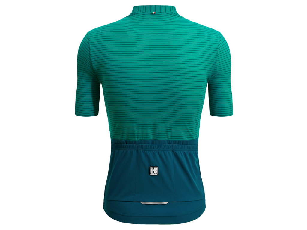 Štýlový a pohodlný dres SANTINI Colore Riga, vyrobený z extra priedušných a rýchloschnúcich materiálov pre maximálny komfort, vás podrží na každom cyklistickom výjazde. Vysoko kvalitná, mäkká technická tkanina sa prispôsobí telu bez obmedzenia pohybu, navyše nesie na vrchnej časti a rukávoch pruhy z talianskeho ľahkého polyamidu. Vnútorný silikónový úchyt v páse udržuje dres na svojom mieste za akýchkoľvek okolností. Trojité vystužené zadné vrecko zvládne ukryť všetky nevyhnutné drobnosti a reflexné body zvýšia vašu viditeľnosť.