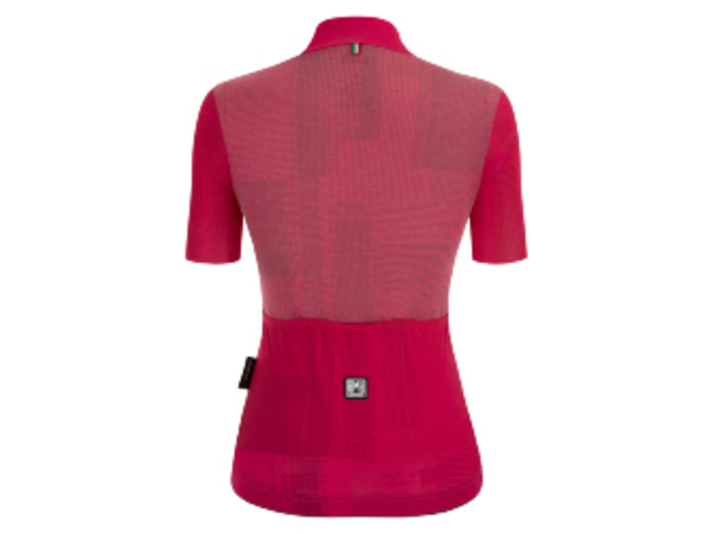 SANTINI Delta Kinetic Lady je super priedušný dámsky letný dres klasického strihu s krátkymi rukávmi a bezšvovými lemami, vyrobený z materiálu Polartec Power Stretch, ktorý sa vyznačuje 4-cestnou strečovou technológiou pre vynikajúce prispôsobenie a voľnosť pohybu. Model je aerodynamický, ľahký a zadný panel je vyrobený z tkaniny Delta od spoločnosti Polartec na rýchly odvod potu od tela, čo zaručuje rýchle schnutie a skvelú priedušnosť. Vhodné na výkonnostný tréning a preteky.
