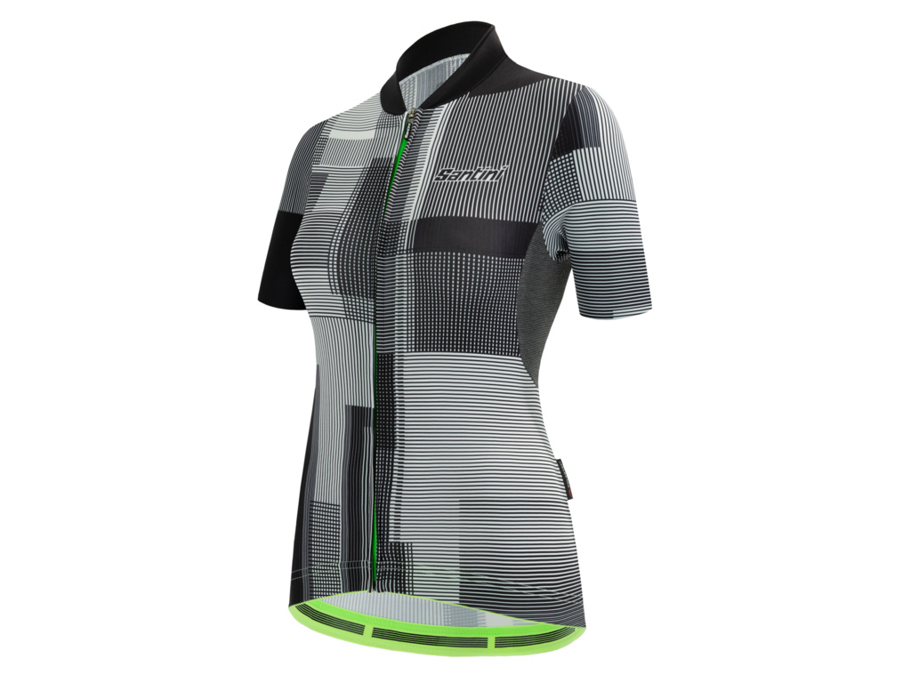 SANTINI Delta Kinetic Lady je super priedušný dámsky letný dres klasického strihu s krátkymi rukávmi a bezšvovými lemami, vyrobený z materiálu Polartec Power Stretch, ktorý sa vyznačuje 4-cestnou strečovou technológiou pre vynikajúce prispôsobenie a voľnosť pohybu. Model je aerodynamický, ľahký a zadný panel je vyrobený z tkaniny Delta od spoločnosti Polartec na rýchly odvod potu od tela, čo zaručuje rýchle schnutie a skvelú priedušnosť. Vhodné na výkonnostný tréning a preteky.