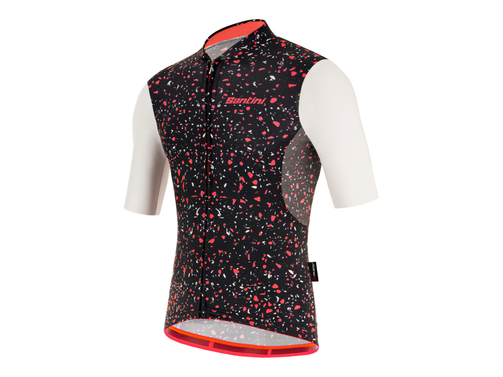 Pohodlný pánsky cyklistický dres vhodný do teplých letných dní alebo do interiéru? To je SANTINI Delta Pietra Jersey Slim fit strihu s rýchloschnúcou tkaninou na chrbte a elastickým silikónovým lemom v spodnej časti.