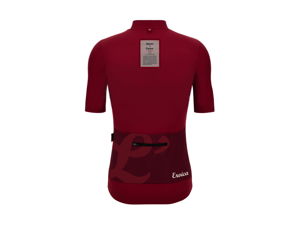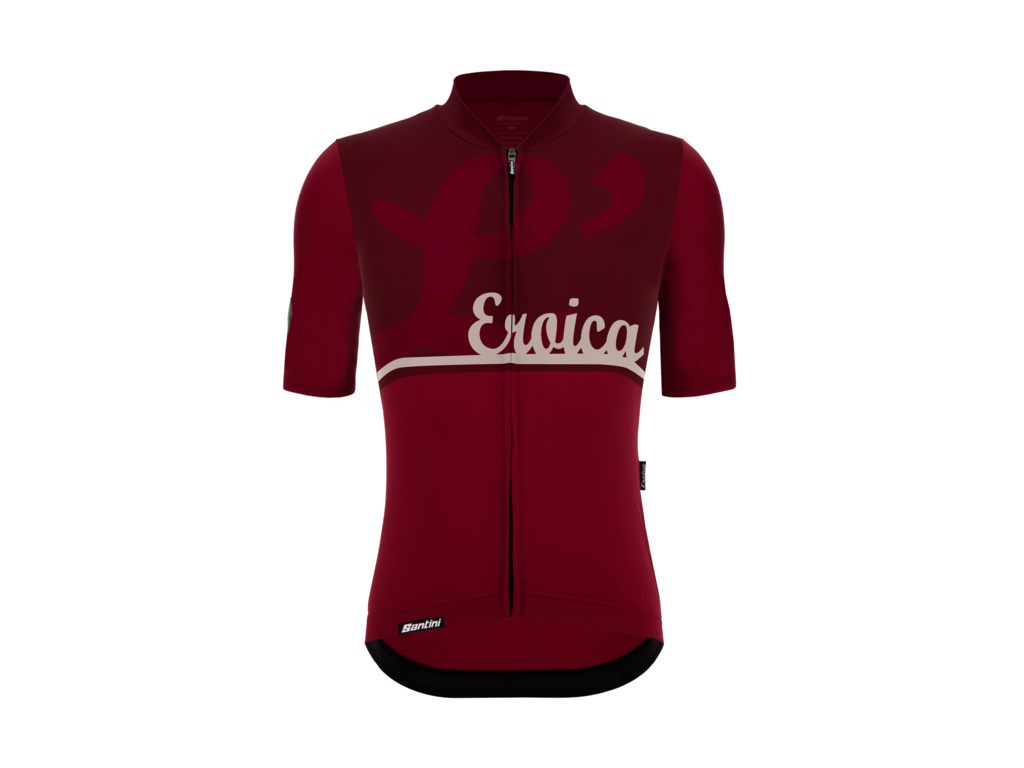 Dres SANTINI Eroica L' je vizuální poctou samotné podstatě závodu L’Eroica. Dominantním prvkem je výrazný potisk písmene „L“ na hrudi, který symbolizuje hluboký vztah k cyklistické tradici. Dres je vyroben z moderních materiálů, které nabízejí vynikající odvod vlhkosti a pohodlí i během horkých letních dnů, aniž by tělo nepříjemně svíraly. Střih přirozeně kopíruje postavu a díky elastickému lemu se silikonovým gripem zůstává dres stabilně na svém místě i při intenzivním pohybu. Celkový vytříbený vzhled doplňuje krytý zip a speciální etiketa na zadní kapse, která vzdává hold emocím spojeným s tímto legendárním závodem.