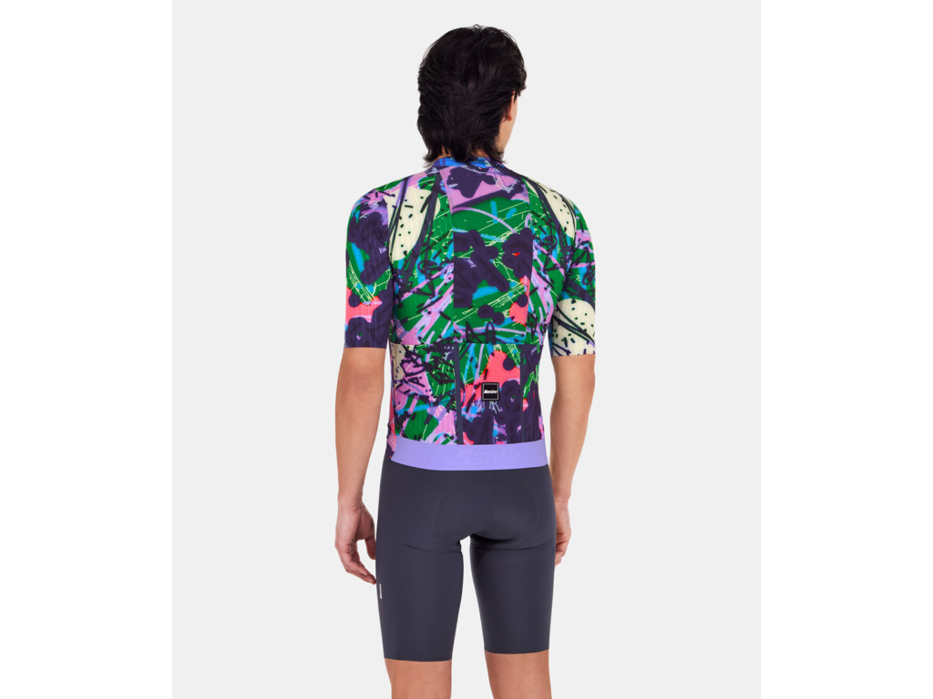 SANTINI Redux je špičkový cyklistický dres, ktorý spĺňa nároky profesionálnych športovcov na aerodynamiku, ľahkosť a pohodlie. Je vyrobený z prémiových materiálov Clima a Flow shuttle, ktoré zabezpečujú nízku hmotnosť, rýchle schnutie a ochranu pred UV žiarením. Špeciálny aerodynamický strih minimalizuje odpor vzduchu a dokonale prilieha k telu ako druhá koža.