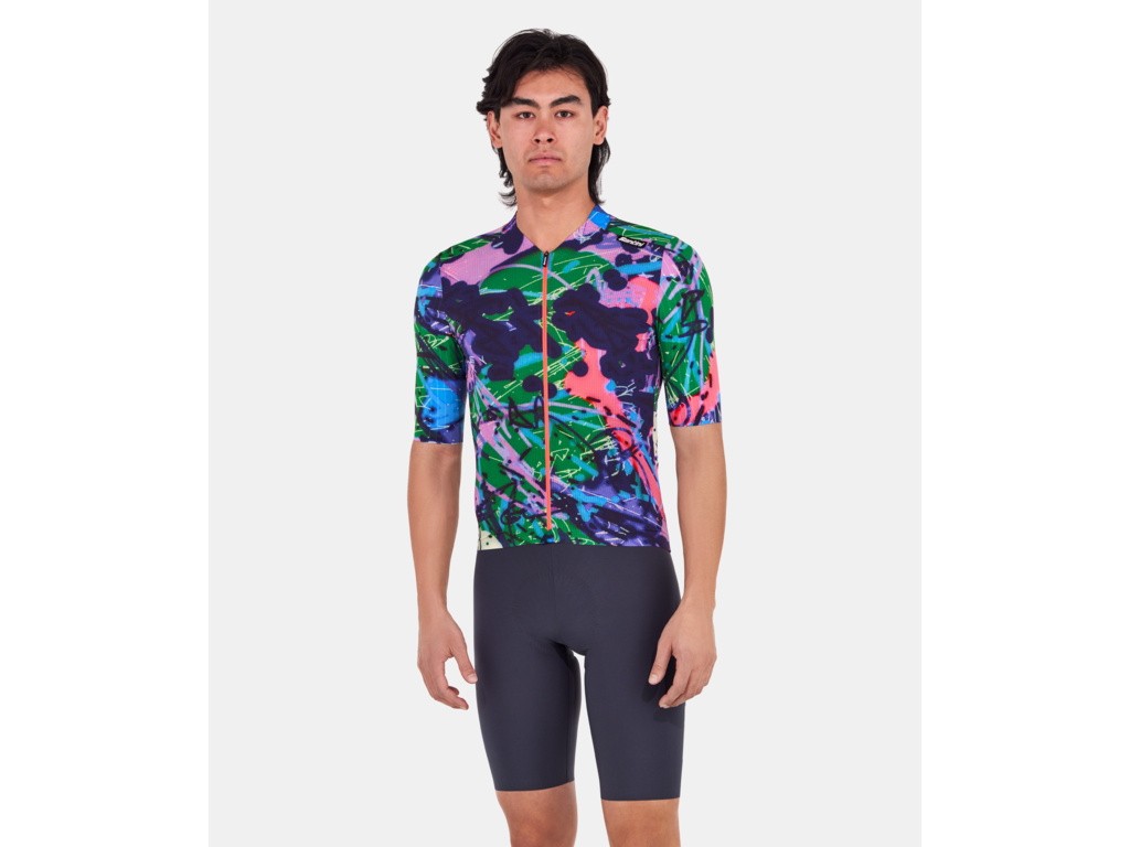 Pre dokonalú stabilitu počas jazdy je dres vybavený elastickým pásom so silikónovým gripom na chrbte a laserom strihanými rukávmi bez lemu. Tri laserom rezané zadné vrecká sa diskrétne prispôsobia telu, keď nie sú používané, čím zachovávajú čistý aerodynamický vzhľad. Bezpečnosť zvyšuje reflexný pás integrovaný do zadného elastického pásu, ktorý zlepšuje viditeľnosť na ceste.