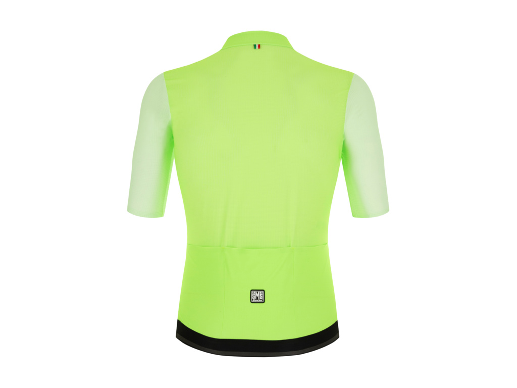 SANTINI Redux Vigor je aerodynamický výkonný dres v super strihu s krátkym rukávom. Bol vyrobený z látky Prey Cool, ktorá bola použitá na chrbte a rukávoch, pretože je ľahká, rýchloschnúca a odolná voči UV žiareniu. Model má pokročilý aerodynamický vzor, elastický silikónový pás a tepelne zvárané manžety rukávov. Hlboké trojité vrecko na chrbte slúži na uloženie nevyhnutných drobností a na elastickom leme na chrbte nájdete integrovanú reflexnú pásku na zvýšenie viditeľnosti, a teda aj vašej bezpečnosti. Dres bol navrhnutý pre rýchlosť a pohodlie.