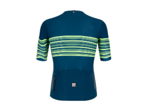 SANTINI Tono Profilo je priedušný dres s krátkym rukávom a strihom SLIM FIT z ľahkého materiálu. Dres bol vyrobený z kombinácie extrémne priedušných a ľahkých tkanín micromesh a navrhnutý pre výkon počas dlhých letných jázd. Rukávy s bezšvovými lemami zaisťujú pohodlie, trojité zadné vrecko s ďalším vreckom na zips slúži na uloženie vašich cenností a reflexné detaily na zadných vreckách podporujú viditeľnosť, a tým aj vašu bezpečnosť.