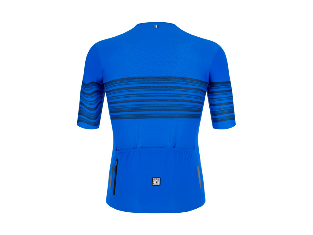 SANTINI Tono Profilo je priedušný dres s krátkym rukávom a strihom SLIM FIT z ľahkého materiálu. Dres bol vyrobený z kombinácie extrémne priedušných a ľahkých tkanín micromesh a navrhnutý pre výkon počas dlhých letných jázd. Rukávy s bezšvovými lemami zaisťujú pohodlie, trojité zadné vrecko s ďalším vreckom na zips slúži na uloženie vašich cenností a reflexné detaily na zadných vreckách podporujú viditeľnosť, a tým aj vašu bezpečnosť.