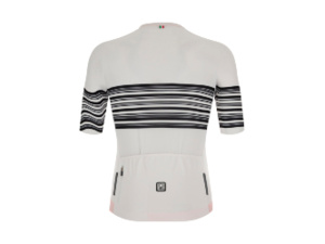 SANTINI Tono Profilo je priedušný dres s krátkym rukávom a strihom SLIM FIT z ľahkého materiálu. Dres bol vyrobený z kombinácie extrémne priedušných a ľahkých tkanín micromesh a navrhnutý pre výkon počas dlhých letných jázd. Rukávy s bezšvovými lemami zaisťujú pohodlie, trojité zadné vrecko s ďalším vreckom na zips slúži na uloženie vašich cenností a reflexné detaily na zadných vreckách podporujú viditeľnosť, a tým aj vašu bezpečnosť.