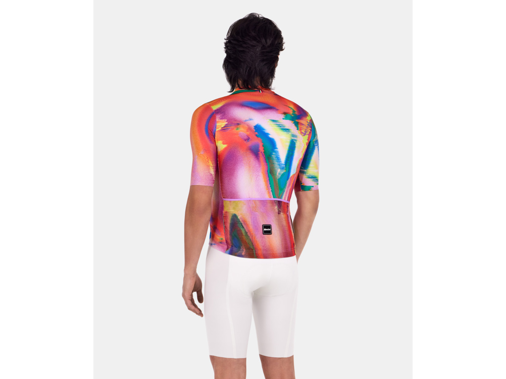 Unisexový dres SANTINI Unico s krátkym rukávom je vyrobený z mimoriadne ľahkej, elastickej tkaniny a má rovnaký dizajn ako vnútorná strana trakov našich šortiek Unico.