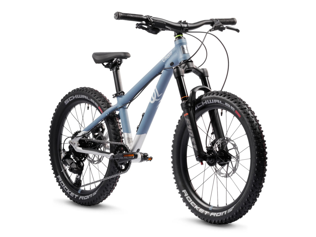Ľahký 20" trailový bicykel so vzduchovou vidlicou RST, 9-rýchlostným radením Shimano CUES a hydraulickými brzdami. Ponúka hliníkový rám, kolesá s pevnými osami a široké plášte Schwalbe Smart Sam 2.35" pre maximálnu kontrolu na trailoch.