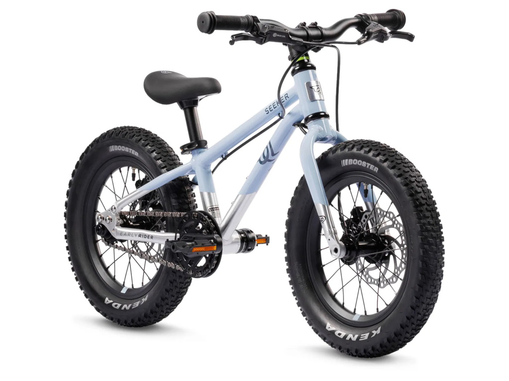 Špičkové osadenie dopĺňajú 16" vypletané kolesá na priemyselných ložiskách s pevnými osami, čo zvyšuje celkovú tuhosť a odolnosť stroja. Široké plášte Kenda Booster 2.25" sa postarajú o perfektnú trakciu a pohodlie na koreňoch aj v blate. Seeker 16 je skrátka ideálnym parťákom pre prvé skutočné výzvy na trailoch.