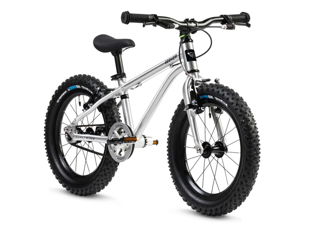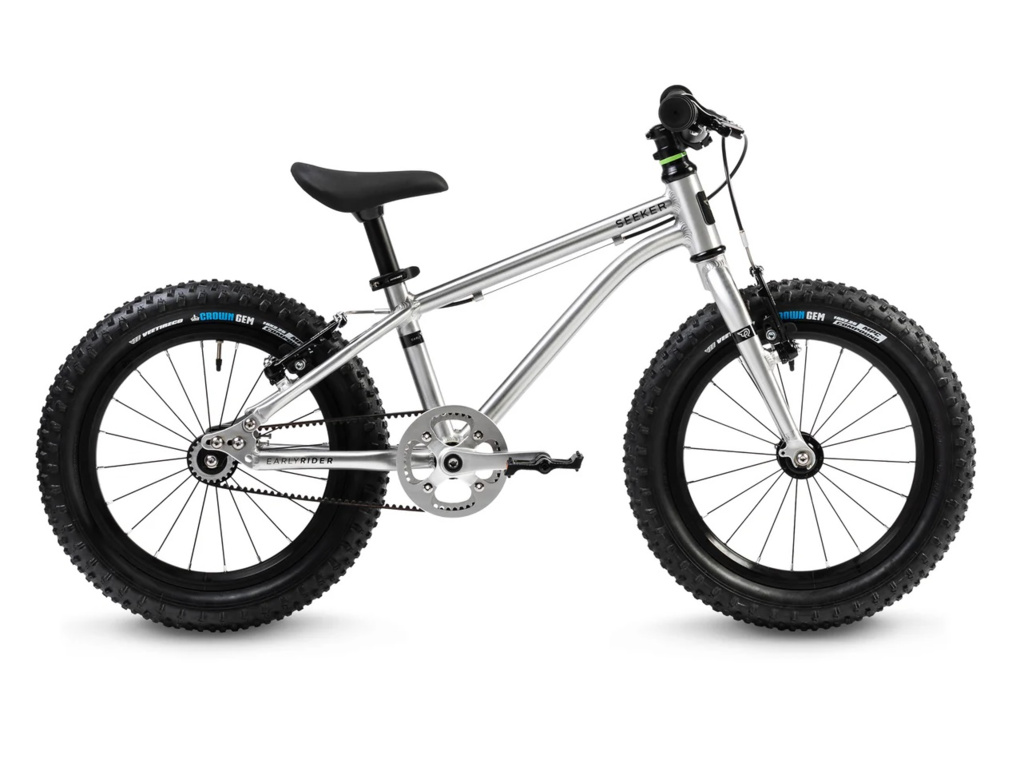 Early Rider Seeker 16 je nový 16-palcový model bicykla pre najmenšie deti vo veku od 3,5 do 6 rokov s telesnou výškou od 105 do 120 cm. Ručne vyrobený rám modelu Seeker 16 je vybavený terénnymi plášťami 16x2,25" a extrémne tichým remeňovým pohonom. Všetko je vyladené do posledného detailu.