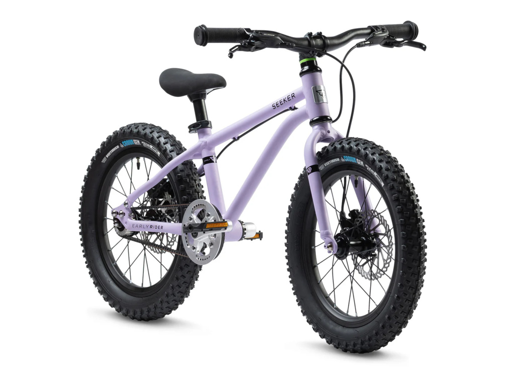 EARLY RIDER Seeker X 16 je úžasný 16-palcový bicykel pre najmenšie deti vo veku 3,5 až 6 rokov, s výškou postavy od 100 do 120 cm. Ručne spracovaný rám modelu Seeker 16 je osadený terénnymi plášťami v rozmere 16x2.25" a extra tichým remeňovým pohonom. Všetko zladené do posledného detailu.