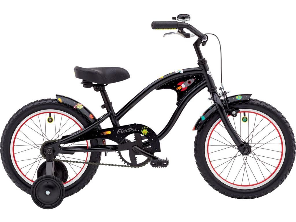 Electra Starship 1 16" Boys Cosmic Black je už len pár sekúnd pred uvedením na trh! Tento bicykel je pripravený na medzigalaktické dobrodružstvá. Na ráme a blatníkoch nájdete kométy, planéty, astronautov, rakety a dokonca aj niekoľko mimozemských pri