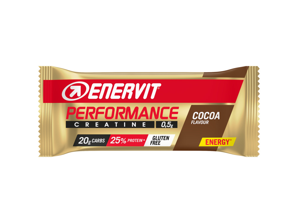 Enervit Performance Bar s kreatínom je energetická tyčinka vhodná pri intenzívnych opakovaných výkonoch – dlhých športových aktivitách s výrazne intenzívnymi úsekmi, kde telo potrebuje veľa energie a zároveň aj ďalšiu podporu pre svaly (kreatín, bielkoviny, aminokyseliny).