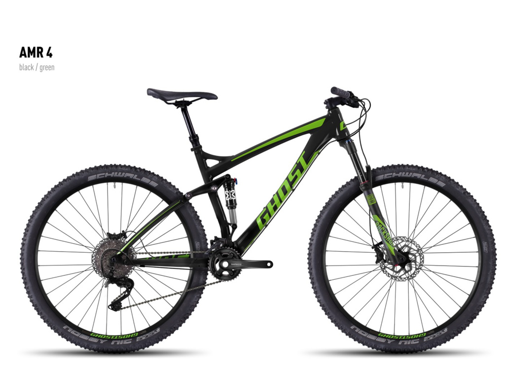 Obľúbený rad celoodpružených 29-palcových bicyklov Ghost AMR so zdvihom 120/130 mm zOST+áva v ponuke aj na rok 2016. Model Ghost AMR 4 je vybavený vidlicou Rock Shox Revelation, uzamykateľným tlmičom X-Fusion O2 RL a komponentmi z novej sady Shimano