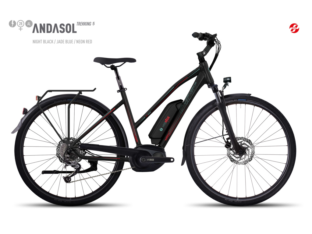 Ghost Andasol Trekking 5 Lady je stelesnením vysokej flexibility, výkonu a elektromobility pre všetkých. Vďaka osvedčenému pohonu Bosch Active a kvalitným komponentom si jazdu na bicykli naozaj užijete.Spoľahlivý stredový motor Bosch Performance poskytuje výkon 250 W a 60 Nm. Môžete si vybrať zo 4 režimov asistencie - ECO, Tour, Sport, Turbo.Na riadidlách je prehľadný displej Bosch Intuvia, ktorý zobrazuje všetky údaje o jazde vrátane aktuálneho dojazdu a úrovne asistencie.Rámová batéria má kapacitu 400Wh / 11Ah, vďaka čomu je dojazd bicykla zvyčajne 80 až 180 km v závislosti od zvolenej úrovne asistencie.Vypočítajte si dojazd