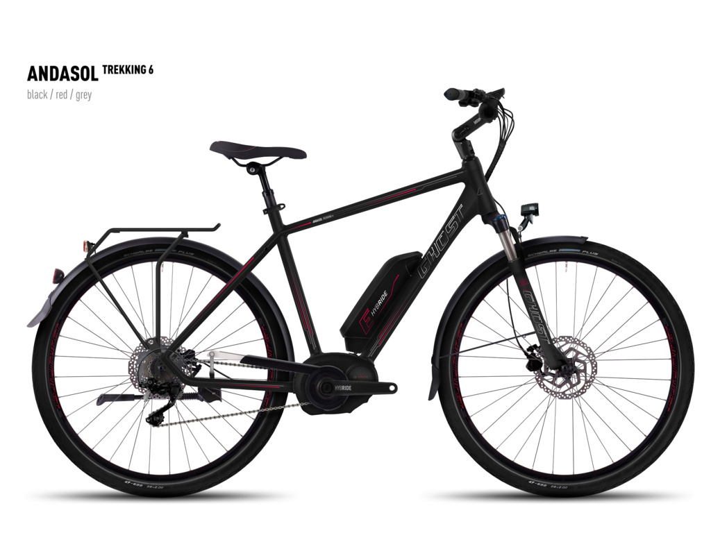 Ekologický a nenápadný, ale rozhodne nie nudný - taký je mestský elektrobicykel Ghost Andasol Trekking 6.Výkonný stredový motor Bosch Performance, 500Wh batéria a kompletná výbava, ako napríklad kvalitné osvetlenie s dynamom v prednom náboji a blatníky.Spoľahlivý stredový motor Bosch Performance poskytuje výkon 250 W a 60 Nm. Môžete si vybrať zo 4 režimov asistencie - ECO, Tour, Sport, Turbo.Riadidlá sú vybavené prehľadným displejom Bosch Intuvia, na ktorom sa zobrazujú všetky údaje o jazde vrátane aktuálneho dojazdu a úrovne asistencie.Rámová batéria má kapacitu 500Wh / 14Ah, čo zvyčajne poskytuje dojazd 90 až 215 km v závislosti od zvolenej úrovne asistencie.Vypočítajte si svoj dojazd