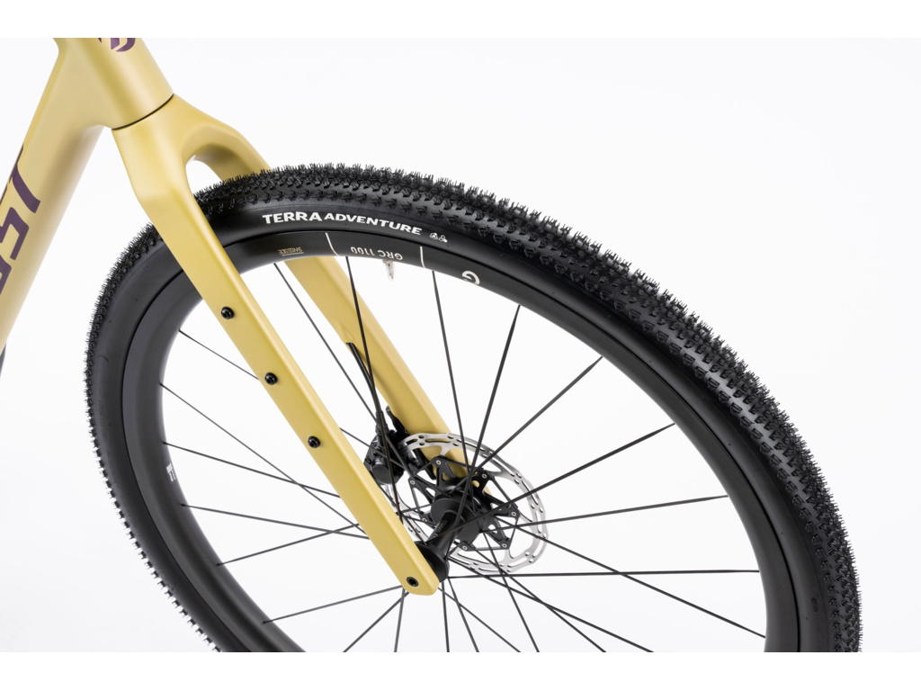 ? Asket CF Pro: Solídna výbava, pohon Shimano GRX 1x12, Karbónová vidlica, hliníkové riadidlá a kolesá.
