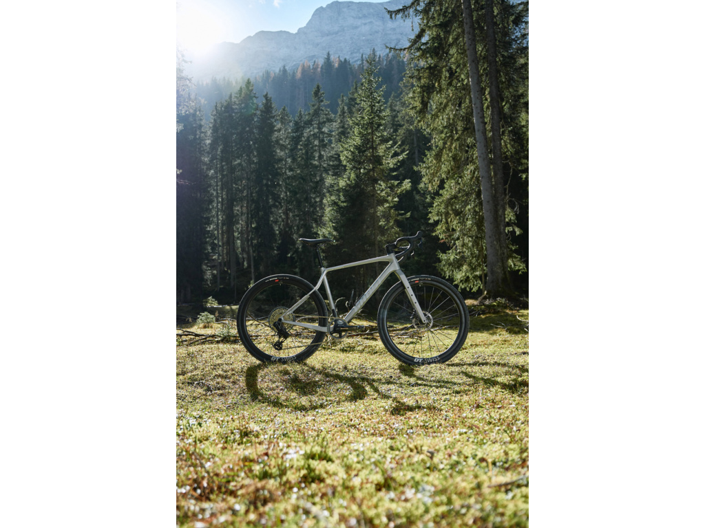 Asket CF Pro: Solídna výbava, pohon Shimano GRX 1x12, karbónová vidlica, hliníkové riadidlá a kolesá.