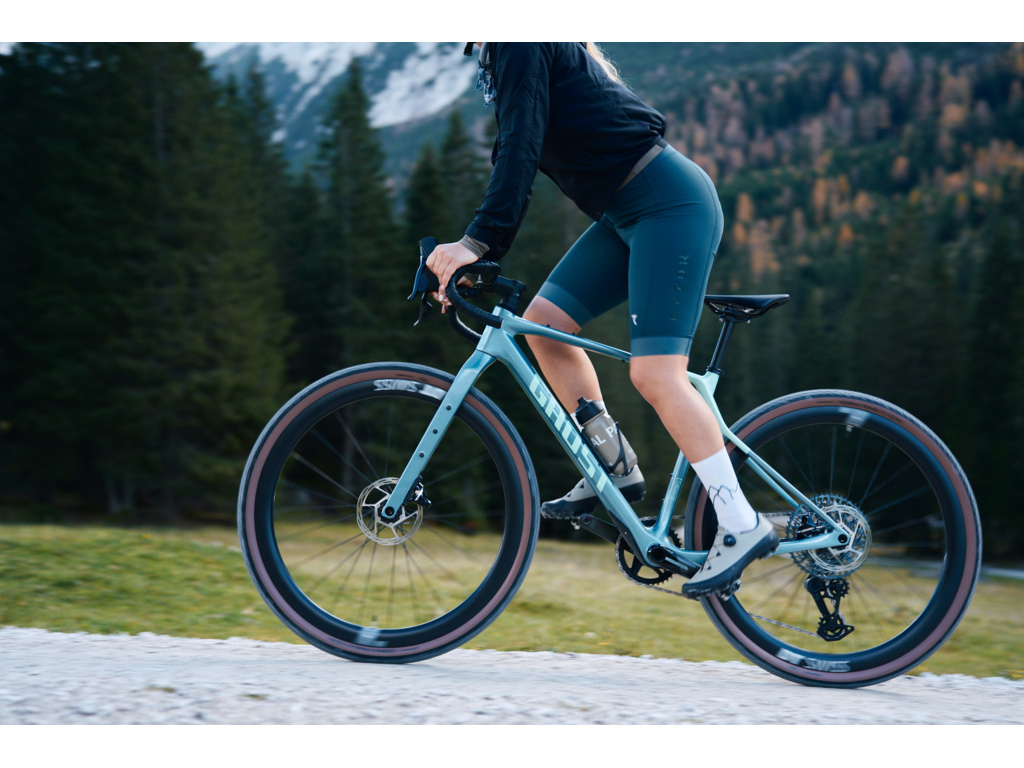 GHOST Asket CF X je vrcholně vybavený gravel bike s karbonovým rámem a vidlicí, ideální pro zdolávání štěrkových stezek a nezpevněných cest.