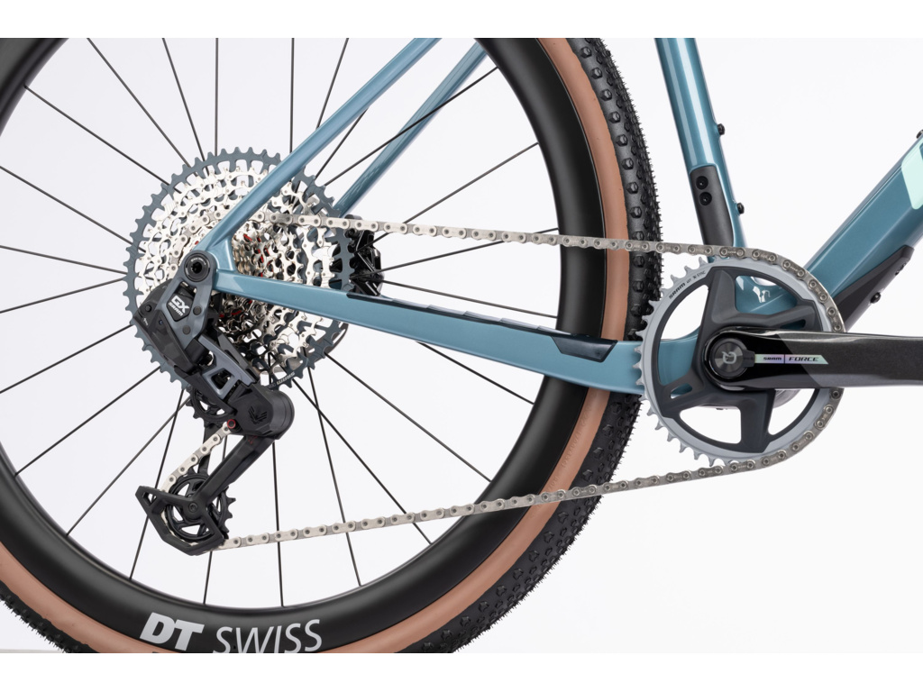 Asket CF X: Nádherný perleťový rám vybavený elektrickou sadou SRAM GX a karbónovými kolesami DT Swiss GRC 1600 SP.