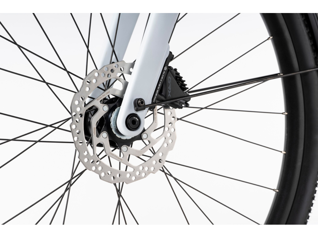 Základom je hliníkový rám s čistými líniami vďaka pokročilému hydroformingu a s hladkými, ručne zabrúsenými zvarmi. Vnútorné vedenie kabeláže pridáva na celkovej elegancii a pevné osky zaisťujú vysokú tuhosť a dlhú životnosť. Ľahká karbónová vidlica výrazne znižuje vibrácie a prispieva k lepšej kontrole vo vyššej rýchlosti aj na horšom povrchu. Kombinácia týchto dvoch materiálov dáva bicyklu ideálny pomer medzi pevnosťou, komfortom a nízkou hmotnosťou.