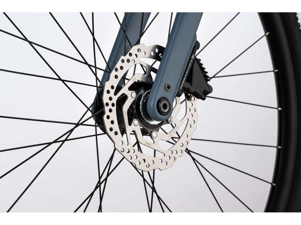 Základom je hliníkový rám s čistými líniami vďaka pokročilému hydroformingu a s hladkými, ručne zabrúsenými zvarmi. Vnútorné vedenie kabeláže pridáva na celkovej elegancii a pevné osy zaisťujú vysokú tuhosť a dlhú životnosť. Ľahká karbónová vidlica výrazne znižuje vibrácie a prispieva k lepšej kontrole vo vyššej rýchlosti aj na horšom povrchu. Kombinácia týchto dvoch materiálov dáva bicyklu ideálny pomer medzi pevnosťou, komfortom a nízkou hmotnosťou.
