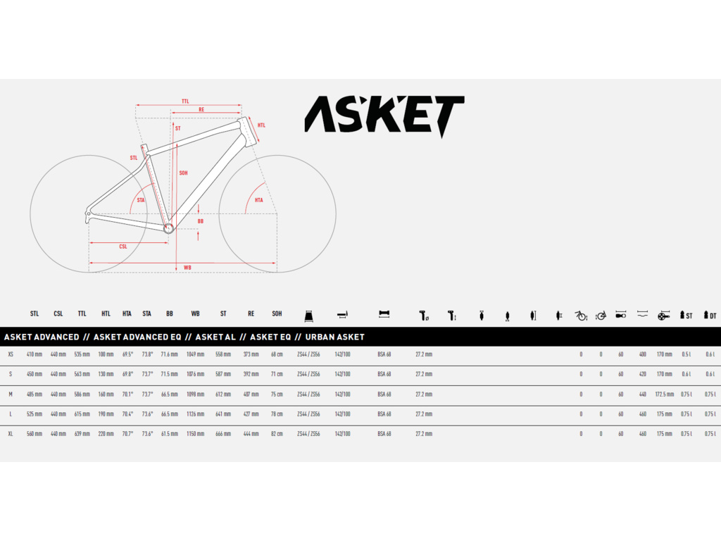 ASKET AL EQ plnohodnotná výbava v podobe blatníkov, nosiča a svetiel poháňaných dynamom. Pohon SHIMANO Cues 1x10. Pripravené na montáž stojana. Pripravené na dochádzanie za každého počasia.