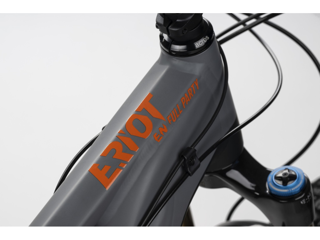 GHOST E-RIOT je skutočný Enduro e-bike so 170 mm zdvihu vpredu a 160 mm vzadu. Dokonale si poradí s terénom, ktorý mu naordinujete. Vyladená geometria SUPERFIT® a nový systém odpruženia Traction Link® udrží zadné koleso v kontakte s povrchom, pokiaľ to práve nechcete inak. V ponuke sú modely na hliníkovom aj karbónovom ráme. S týmto elektrobicyklom si bez krvi a s trochou potu užijete flow pri ceste hore a potom ho s istotou pošlite čumákom dole. Úplne nový Bosch Smart System® zahŕňa nový displej Kiox 300, motor Performance CX a nadupanú 750Wh batériu, s ktorou sa môžete v pokoji na celý deň stratiť v horách, a ešte vás spoľahlivo dovezie domov. Tak naskočte a vyrazte sa baviť. …EXPECT RIOT!