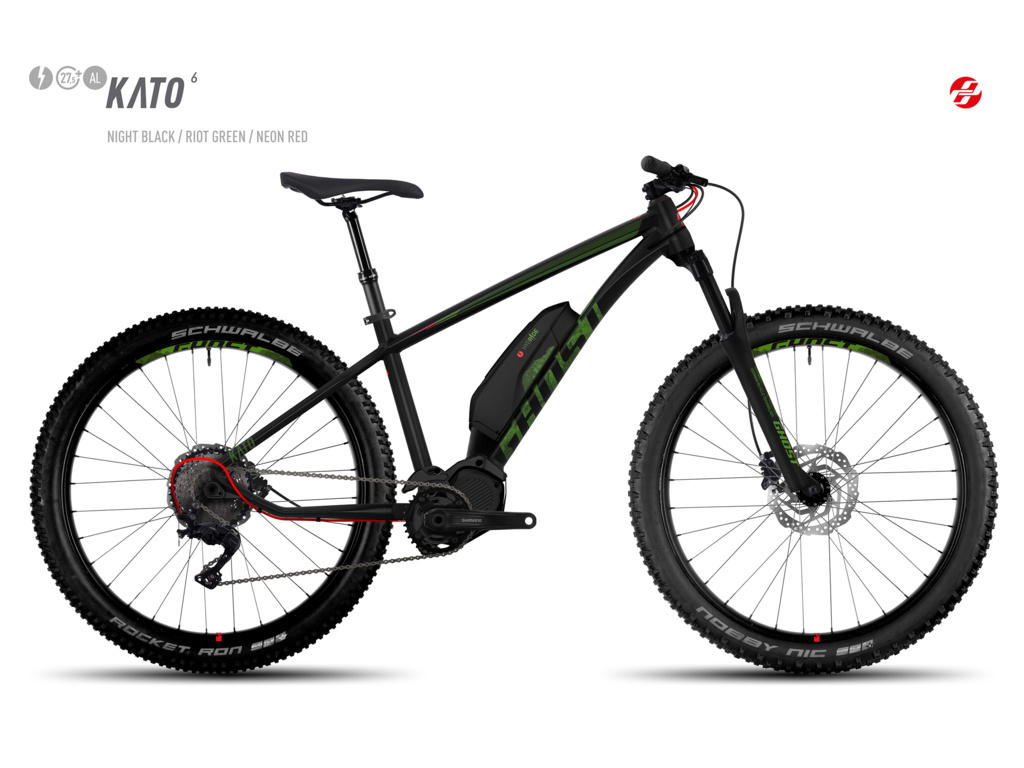 Ghost Hybride Kato 6 27,5 je nový model MTB e-bicykla vybavený výkonným stredovým motorom Shimano Steps E8000. Hybride Kato 6 27.5 má široké kolesá s plášťami 27,5x2,8", vzduchovú vidlicu Suntour Aion a spoľahlivé komponenty SLX/XT pre športovo založených jazdcov.Úplne nový stredový motor Shimano Steps E8000 má vysoký výkon 250 W a 70 Nm. Steps E8000 je prvý motor určený výhradne pre horské bicykle. Malý displej na riadidlách zobrazuje úroveň nabitia batérie, zvolený jazdný režim, aktuálnu rýchlosť a niekoľko ďalších údajov o jazde.Rámová batéria má kapacitu 500 Wh, čo bicyklu zvyčajne poskytuje dojazd 90 až 180 km v závislosti od zvolenej úrovne asistencie.