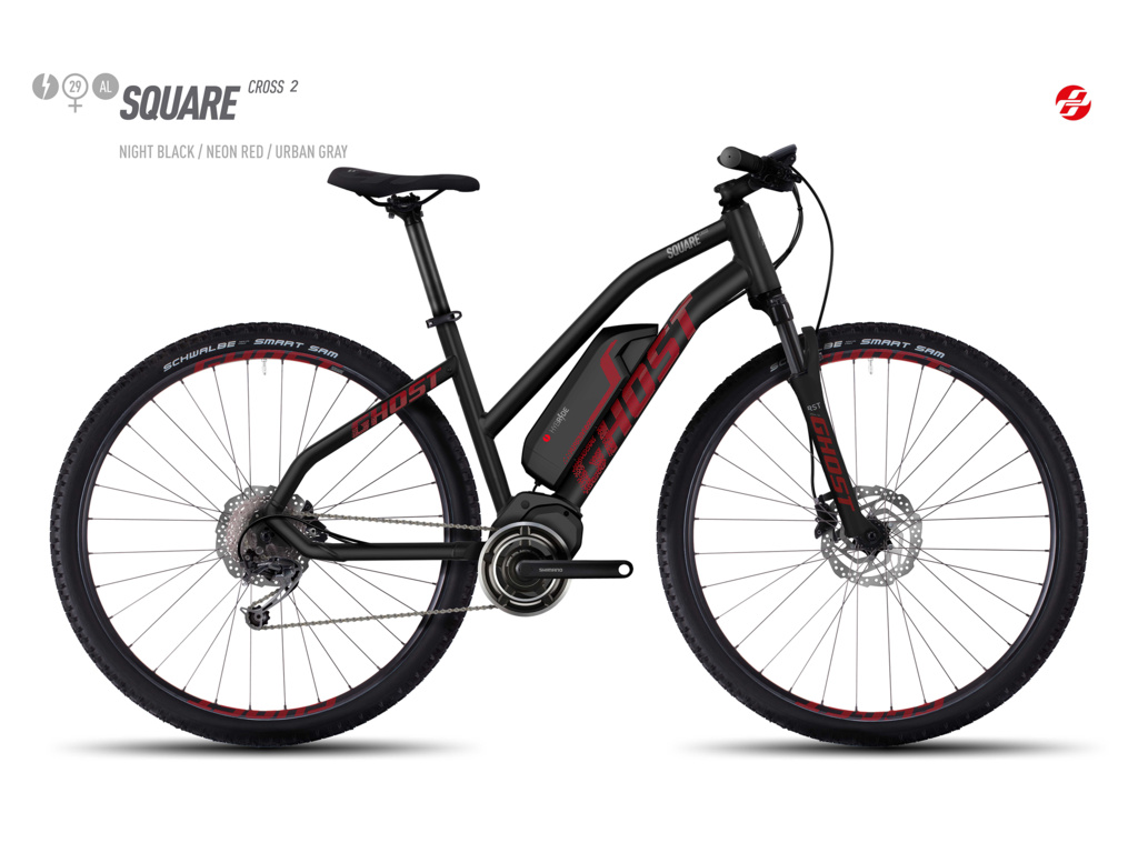 Ghost Hybride Square Cross je nový rad športových elektrobicyklov vybavených spoľahlivými stredovými motormi Shimano Steps. Hybride Square Cross 2 Lady je vybavený vzduchovou vidlicou RST, spoľahlivými komponentmi a dostatočne širokými pohodlnými plášťami Schwalbe.Spoľahlivý stredový motor Shimano Steps poskytuje 250 W a 50 Nm. Počas jazdy si môžete jednoducho vybrať z 3 režimov asistencie pomocou tlačidiel na riadidlách. Všetky údaje o jazde sa zobrazujú na ľahko čitateľnom displeji.Rámová batéria má kapacitu 400 Wh, čo znamená, že dojazd bicykla je zvyčajne 80 až 150 km v závislosti od zvolenej úrovne asistencie.