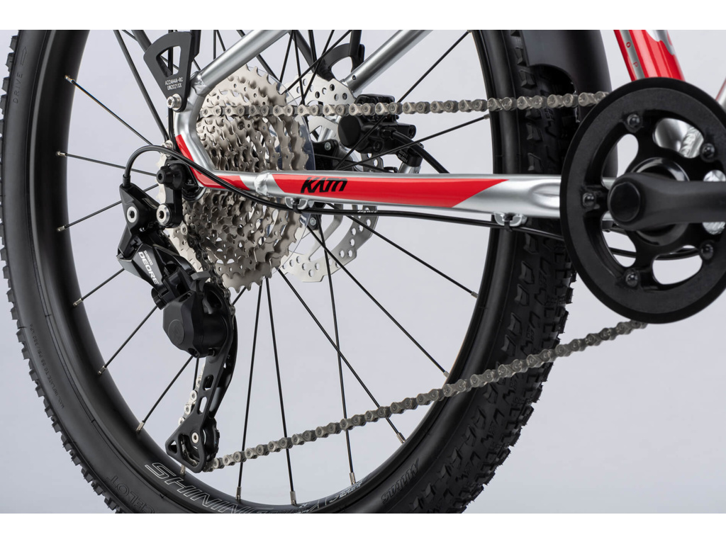 Model GHOST Kato 24 Pre EQ je 24-palcový detský horský bicykel vhodný do mesta, na cyklotrasy aj do lesa. Jeho hliníkový rám je optimalizovaný pre deti s výškou postavy medzi 125-140 cm a vďaka použitému materiálu model zostáva ľahký, pružný a odolný. GHOST Kato 24 Pre EQ má pevnú vidlicu, ktorá dieťaťu pomôže s prenosom energie do pedálov a tlmí vibrácie a nerovnosti na ceste. Spoľahlivé kotúčové brzdy Tektro a 10-rýchlostný prevodník sa stanú prínosom v drsnom teréne, zatiaľ čo nosič, predné svetlo a blatníky sa budú hodiť do mesta.